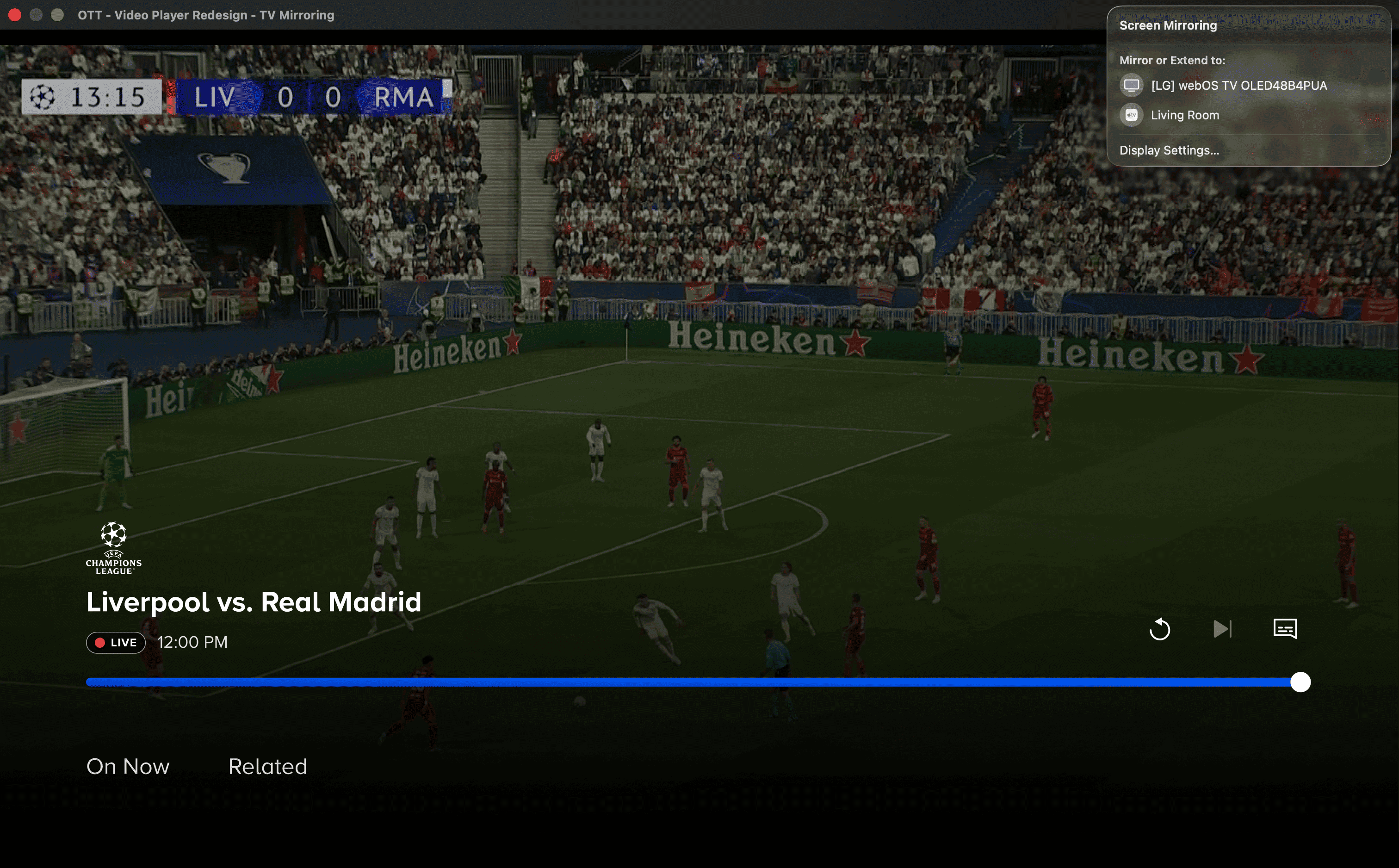 Unification meant different things per platform. Roku, Fire TV, and Smart TV required a custom player design. For tvOS, we were already using Apple's native player, so I had to work directly with an Apple engineer to integrate our feature requirements into that existing framework.