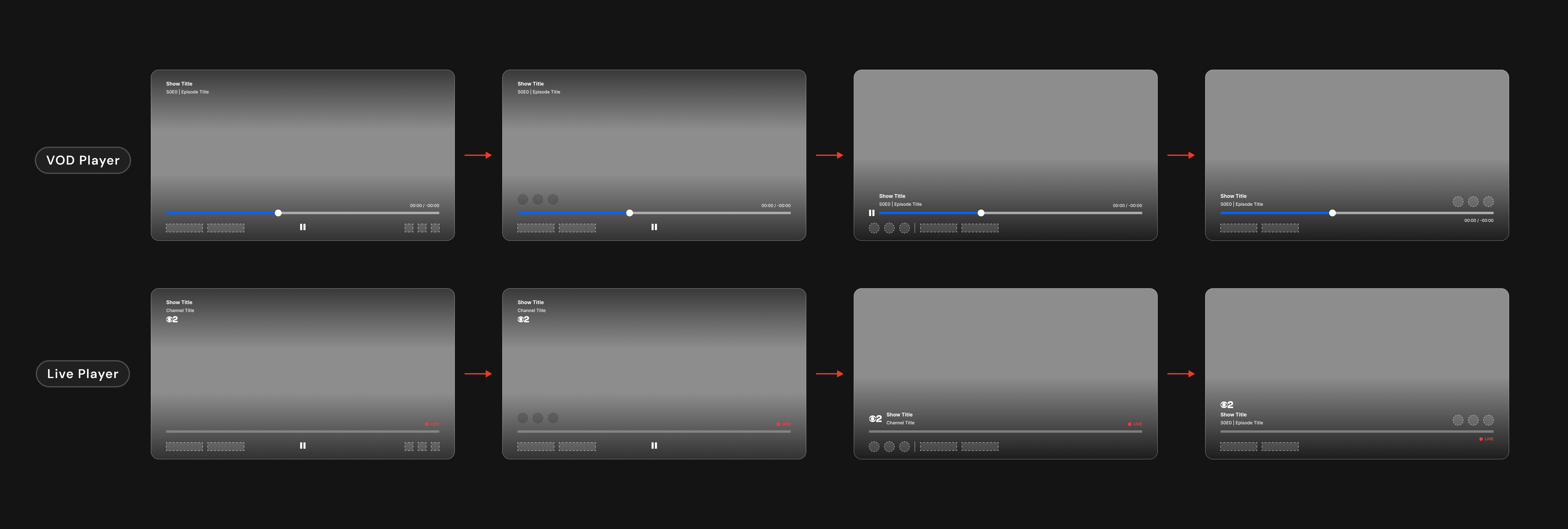 Early explorations testing player control placement, scalability across VOD and Live players.